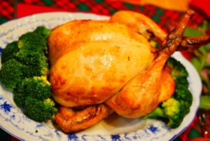 ローストチキンは、見た目の豪華さと香ばしい風味、